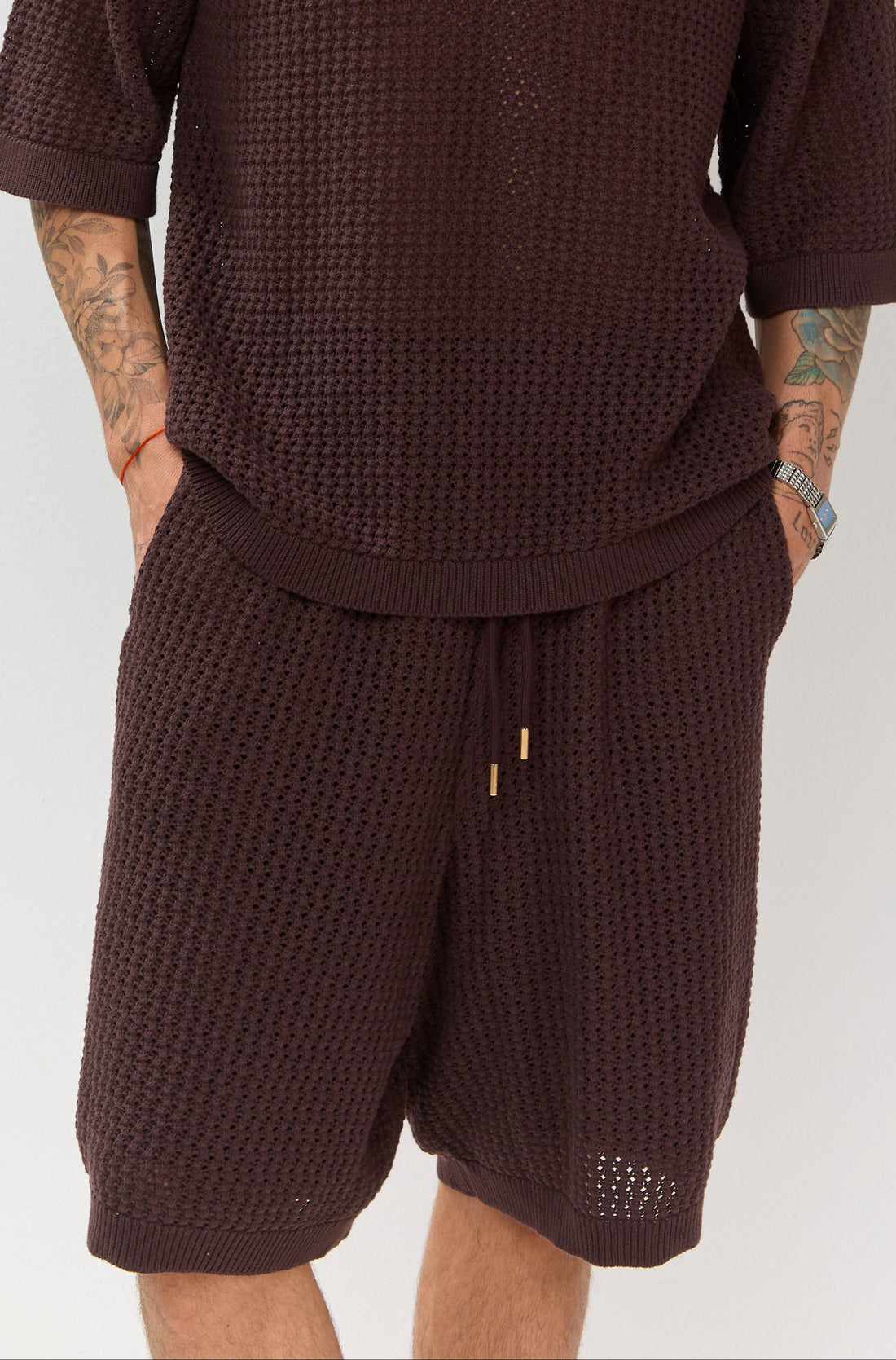 Timeless texture meets modern structure. The Brown Crochet Polo embodies THL’s approach to contemporary craftsmanship...